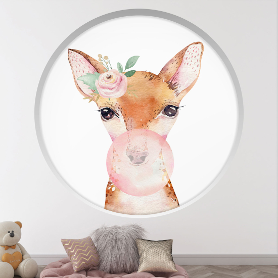 Adesivo Murale - Illusione ottica - Arco rotondo per Bambini - Cerbiatto bolla