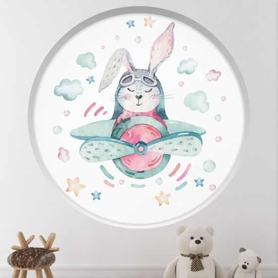 Adesivo Murale - Illusione ottica - Arco rotondo per Bambini - Coniglio aviatore