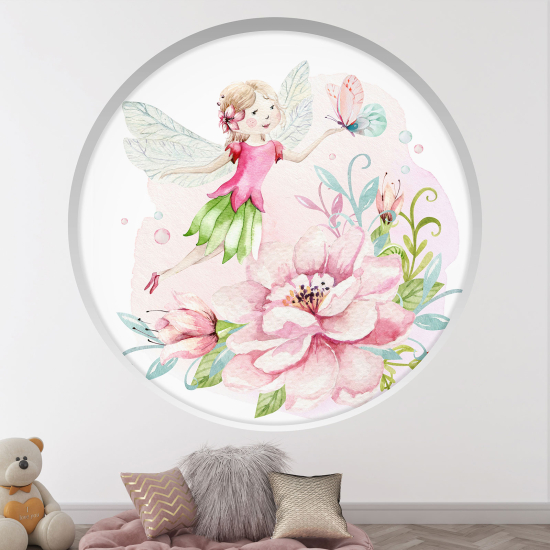 Adesivo Murale - Illusione ottica - Arco rotondo per Bambini - Piccola fata floreale