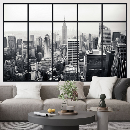 Adesivo Murale - Illusione ottica - Finestra in legno - Vista mare