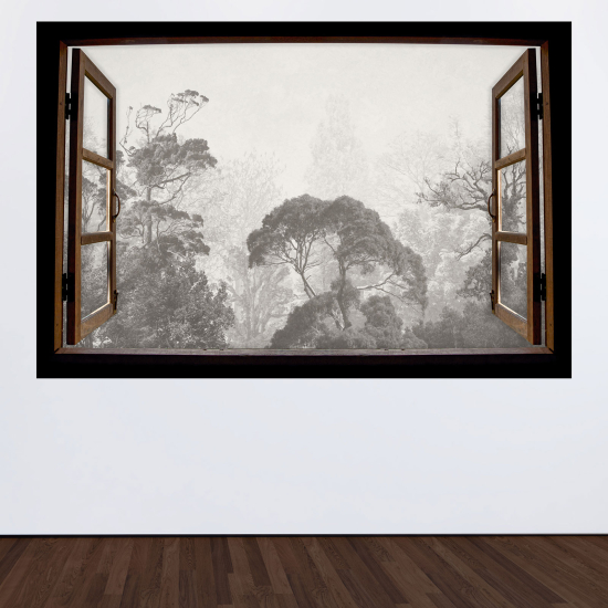 Adesivo Murale - Illusione ottica - Finestra in legno per Bambini - Foresta