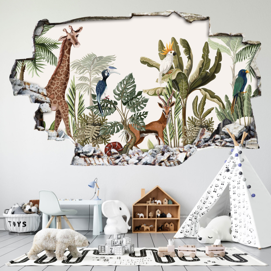 Adesivo Murale - Illusione ottica - Arco rotondo per Bambini - Animali della giungla