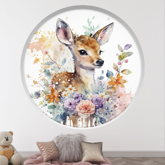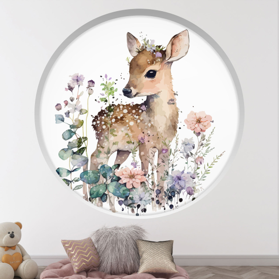 Adesivo Murale - Illusione ottica - Arco rotondo per Bambini - Cerbiatto fiori
