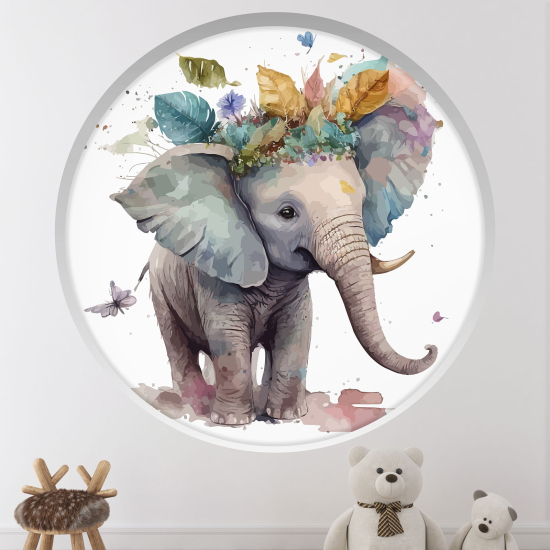 Adesivo Murale - Illusione ottica - Arco rotondo per Bambini - Elefante