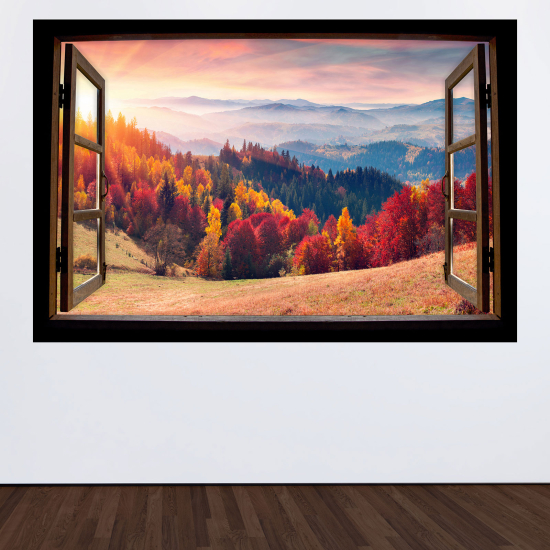 Adesivo Murale - Illusione ottica - Finestra in legno - Tramonto