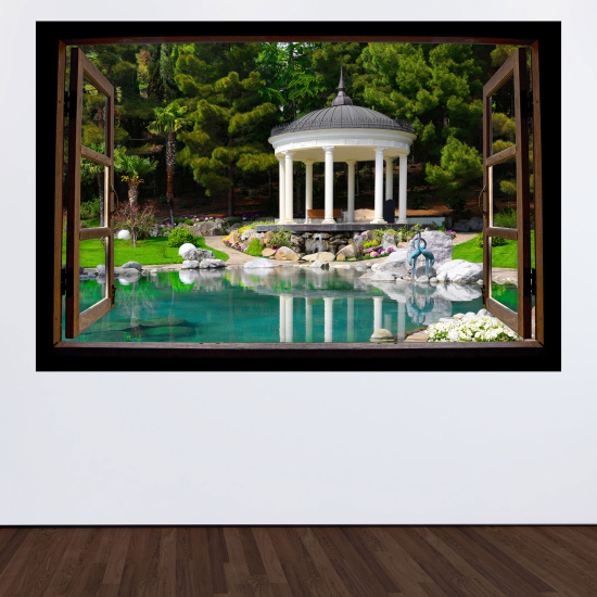 Adesivo Murale - Illusione ottica - Finestra in legno - Giardino