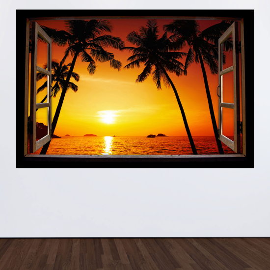 Adesivo Murale - Illusione ottica - Finestra in legno - Paradisiaco
