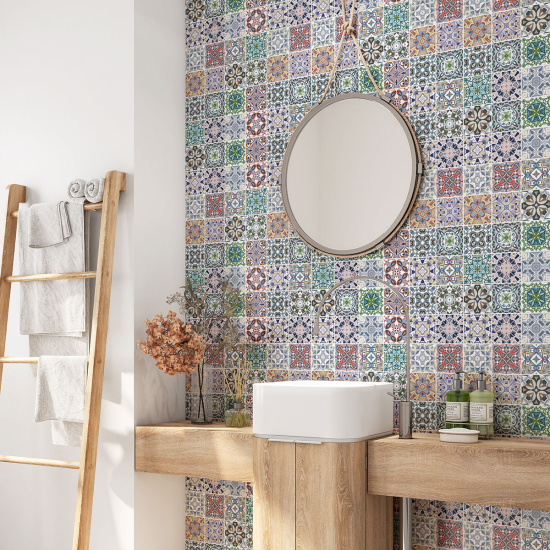 Alzatina adesiva per bagno - Motivo piastrelle di cemento