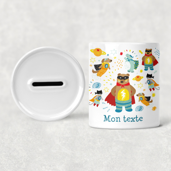 Salvadanaio per bambini personalizzato - Orso Supereroe