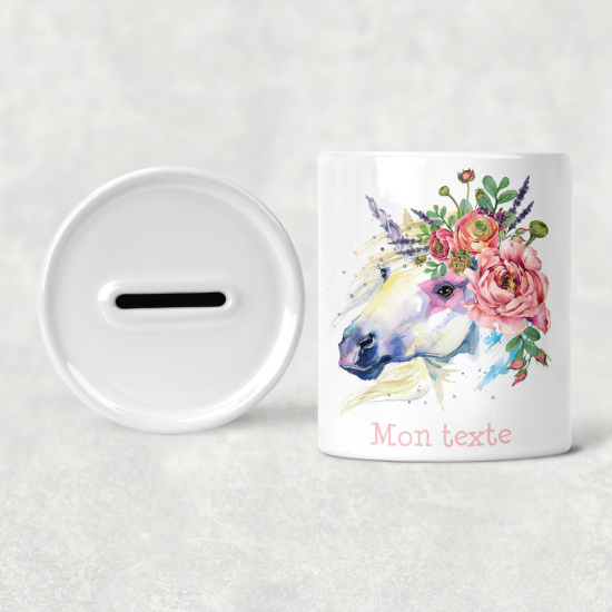 Salvadanaio per bambini personalizzato - Unicorno Fiori