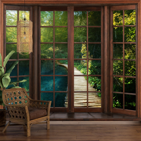 Carta da parati panoramica - Illusione ottica - Finestra in legno - Pontone