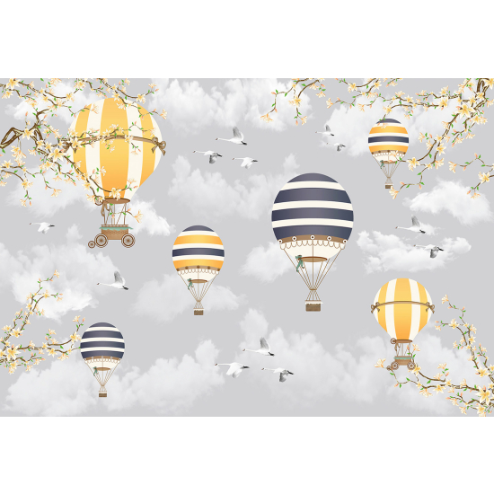 Carta da parati panoramica per bambini - Animali Mongolfiere