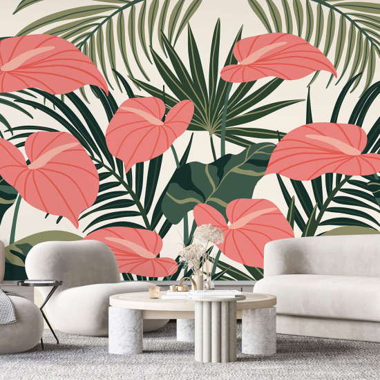Carta da parati panoramica per bambini - Fenicotteri rosa