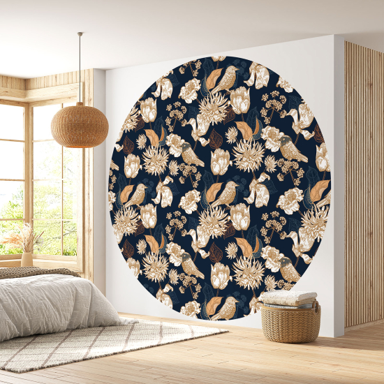 Carta da parati Cerchio / Rotondo - Fiori Uccelli