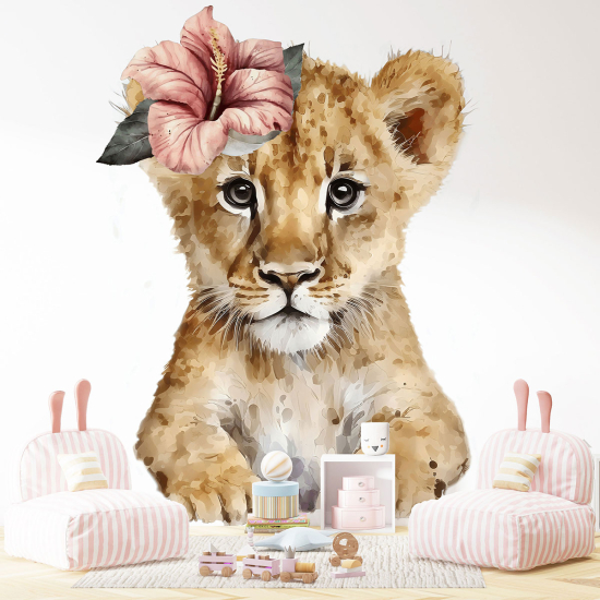 Carta da parati panoramica per bambini - Cucciolo di Leone Fiori