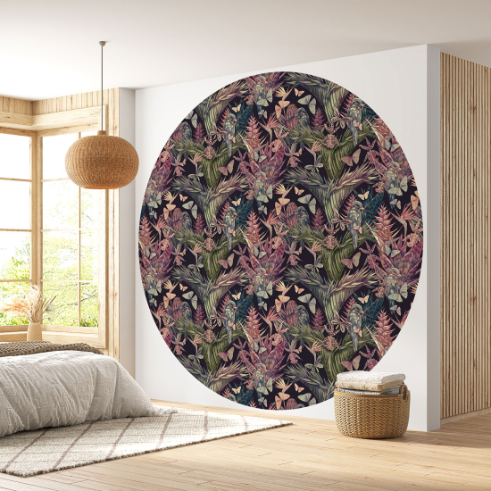 Carta da parati Cerchio / Rotondo - Fiori Uccelli