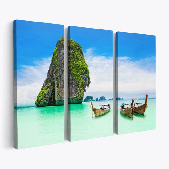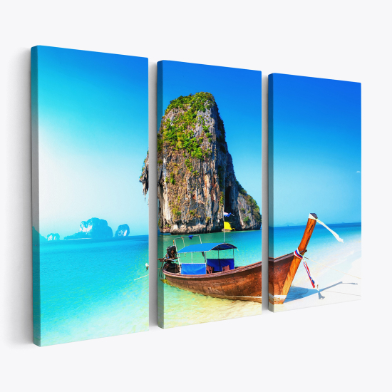 Stampa Trittico su tela - Barca paradisiaca da spiaggia in Thailandia