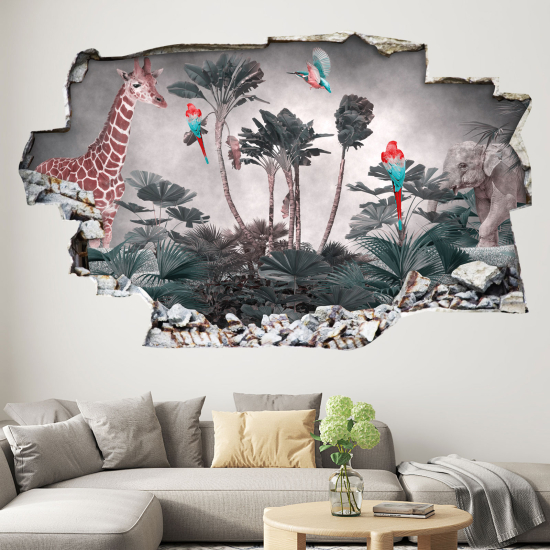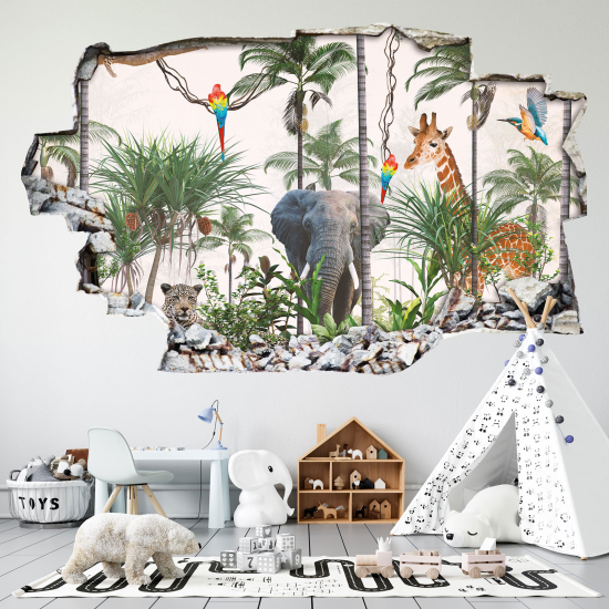 Adesivo murale effetto 3D - Animali della Foresta Tropicale