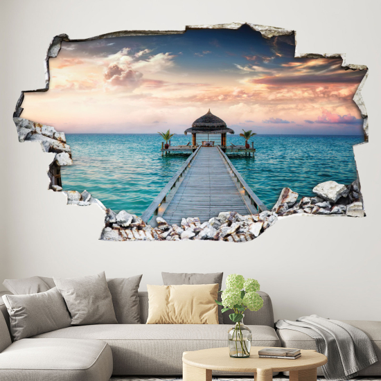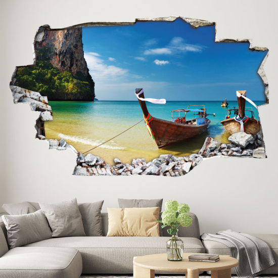 Adesivo murale effetto 3D - Barca sulla spiaggia