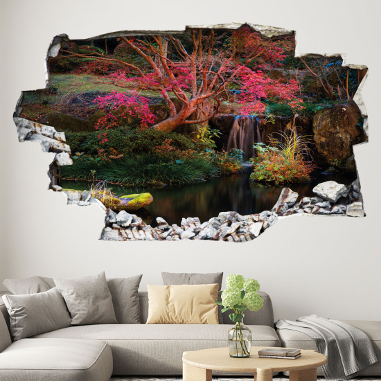 Adesivo murale effetto 3D - Fiume nella Foresta