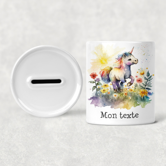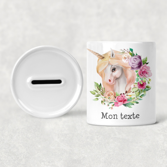 Salvadanaio per bambini personalizzato - Unicorno fiori