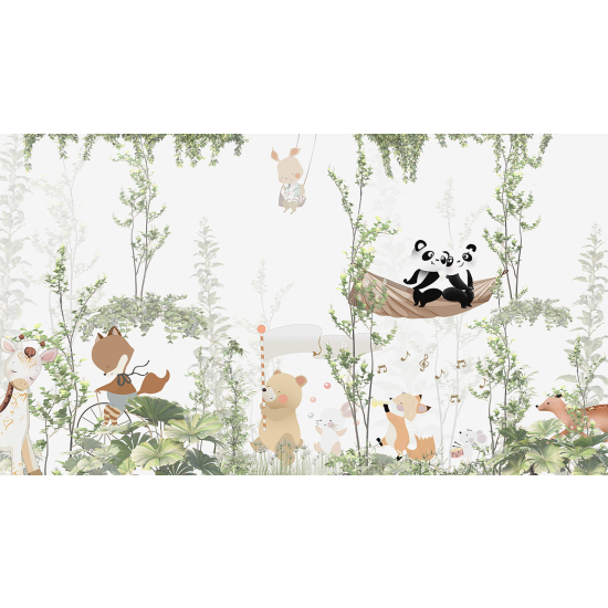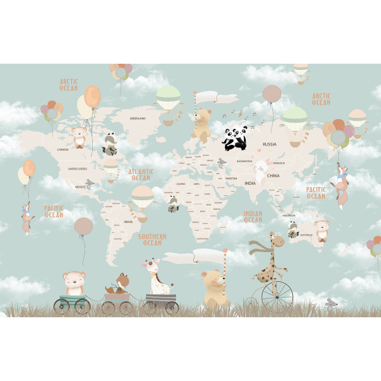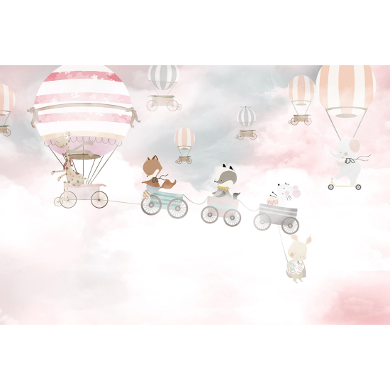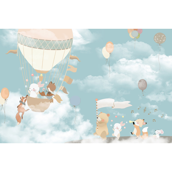 Carta da parati panoramica per bambini - Animali Mongolfiere