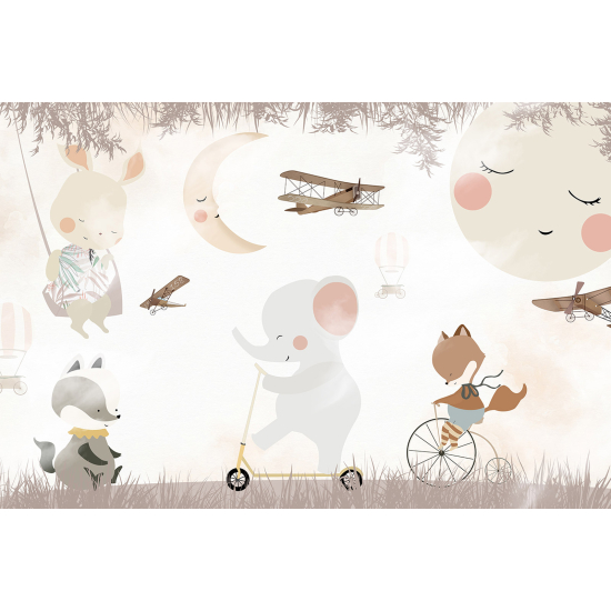 Carta da parati panoramica per bambini - Animali Mongolfiere