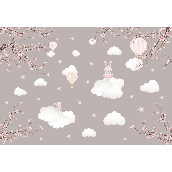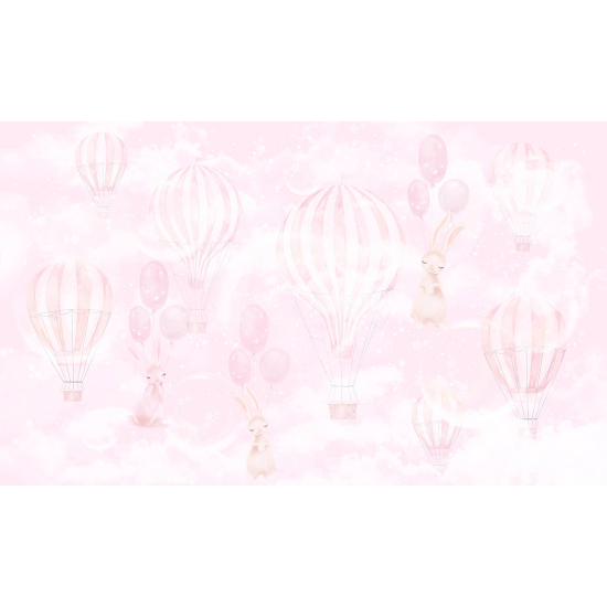 Carta da parati panoramica per bambini - Conigli mongolfiere