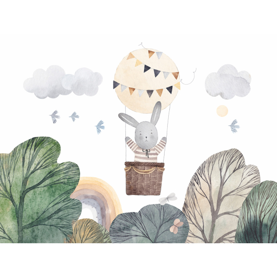 Carta da parati panoramica per bambini - Coniglio mongolfiera