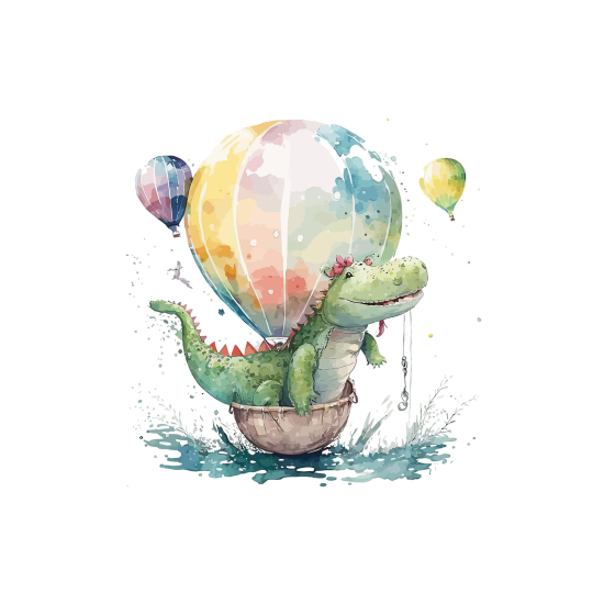 Carta da parati panoramica per bambini - Coccodrillo Mongolfiera