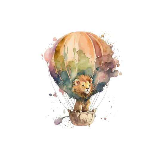 Carta da parati panoramica per bambini - Cucciolo di Leone Mongolfiera