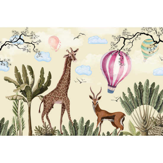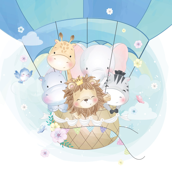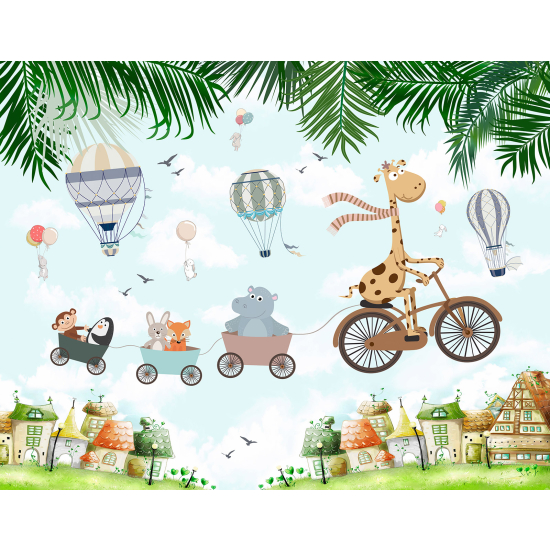 Carta da parati panoramica per bambini - Animali Mongolfiera
