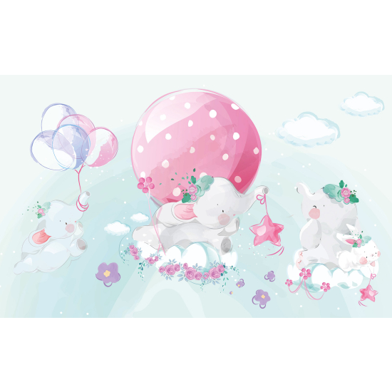 Carta da parati panoramica per bambini - Elefante Mongolfiera