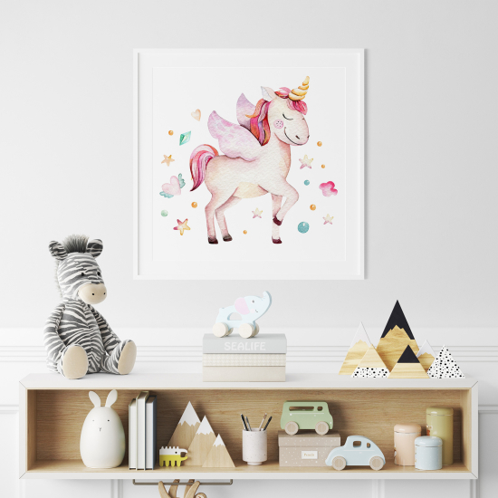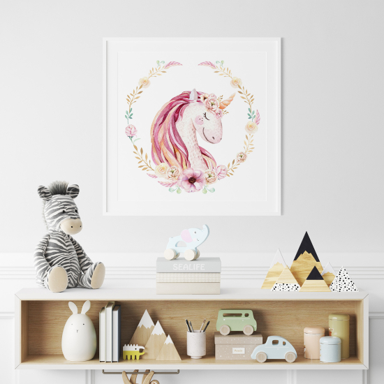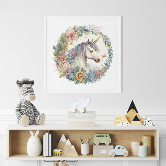 Poster per Bambini - Unicorno Arcobaleno fiori