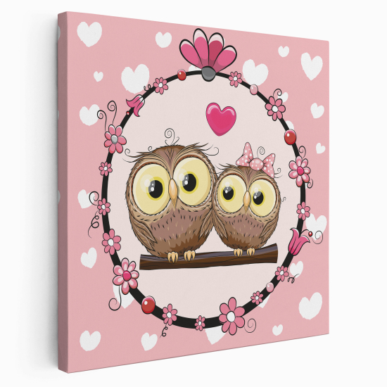 Stampa su tela Quadrata per Bambini - Civette sulla luna