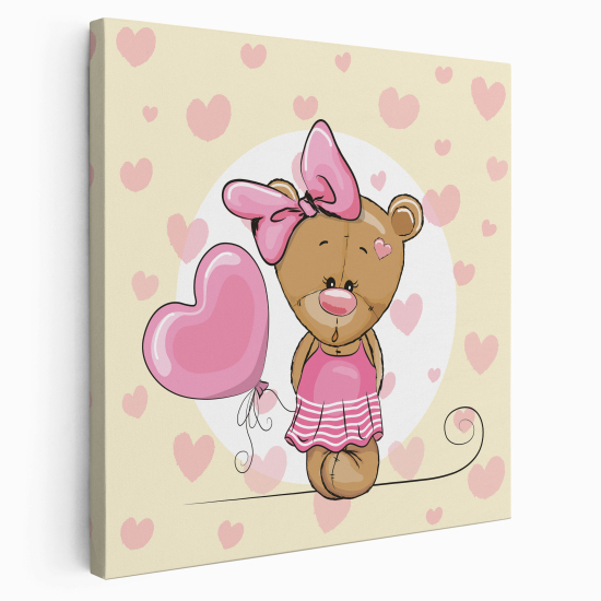 Stampa su tela Quadrata per Bambini - Orsetto Fiori