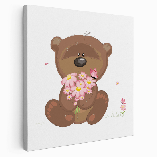 Stampa su tela Quadrata per Bambini - Orsetto fiori