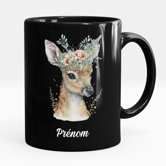 Tazza / Mug personalizzata Nero integrale - Cerbiatto fiori