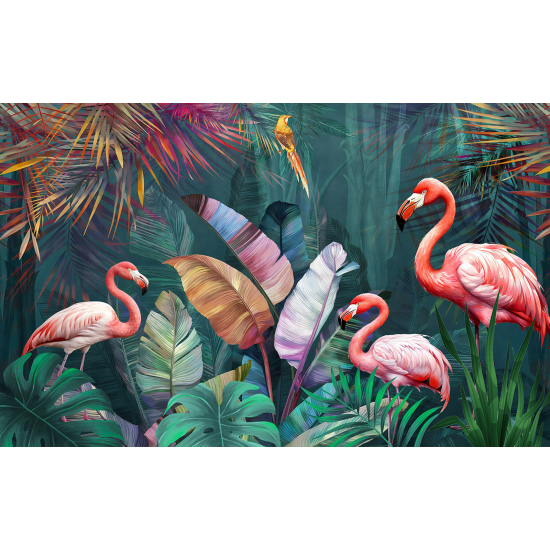 Carta da parati panoramica - Foresta Tropicale Fenicotteri Rosa