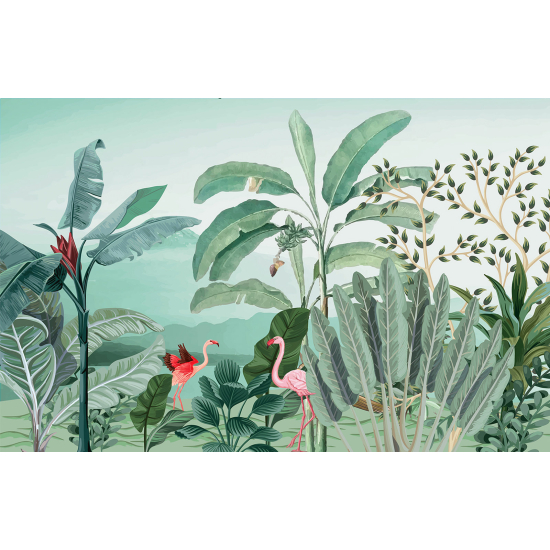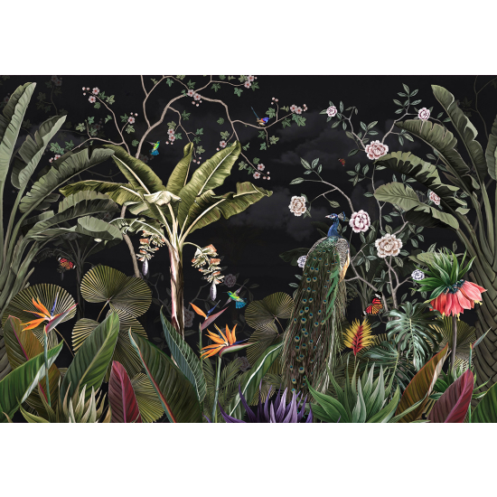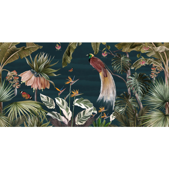 Carta da parati panoramica - Foresta Tropicale Fiori Uccelli